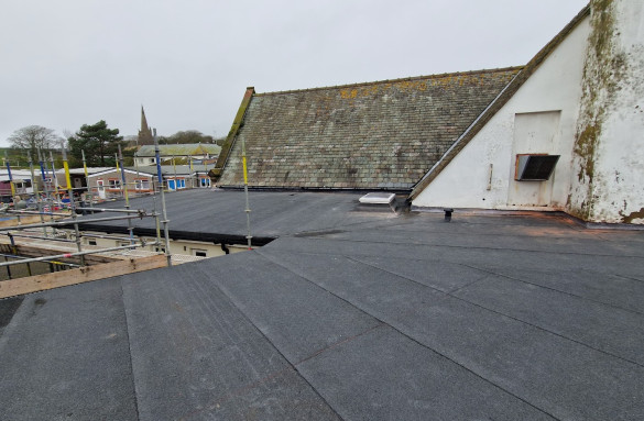 The roof was fully stripped back to the original concrete deck and a new build up insulated felt system installed to conform to current regulations.