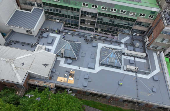 +44 (0)1268 777871Situated in Surrey, the Oak Centre at The Royal Marsden Hospital is one of Europe’s leading cancer centres for children and young people. Proteus Waterproofing® carried out a detailed survey of the existing roof, which was experiencing water ingress in several areas. The asphalt roof, previously repaired with reinforced liquid membranes, required a full system upgrade.